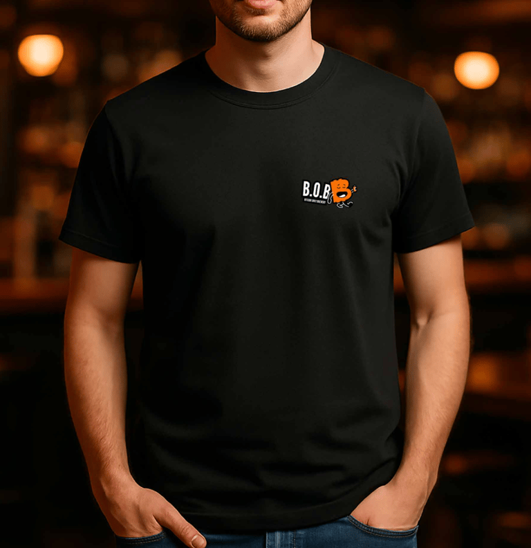 This black tee features the minimalist B.O.B embroidery—perfect for those who want to support Bitcoin Only Brewery. 100% cotton // Unisex fit // Embroidered logo on chest.