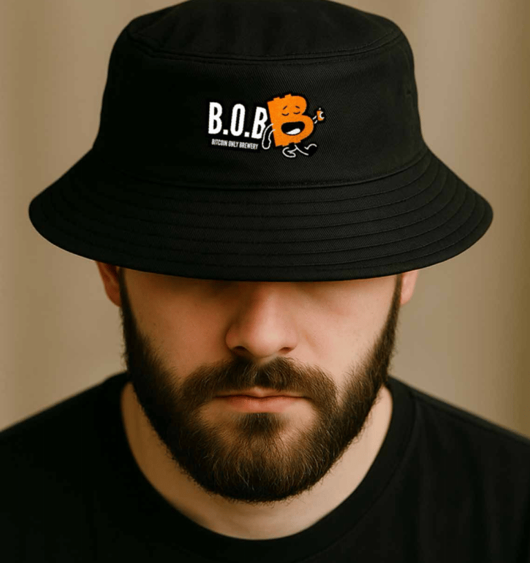 Black Embroidered Bucket Hat. - This black bucket hat is made for beer lovers who speak Bitcoin. // 100% cotton // Front embroidery: “BOB: Bitcoin Only Brewery”// One size fits most (unisex)